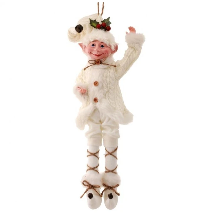 17in White Cable Knit Sweater Bendable Elf Ornament