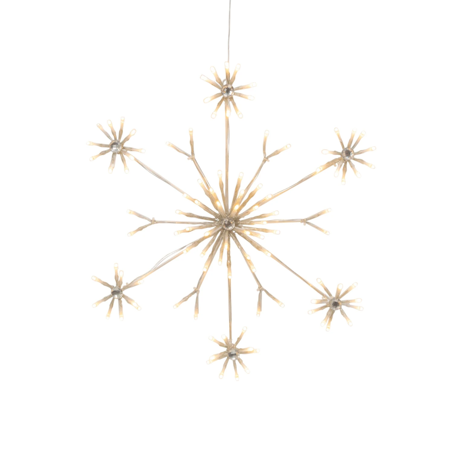 Let it snow with this 20-inch tall LED snowflake. The perfect piece of outdoor decor to add a touch of whimsical winter charm to your holiday season, leave it up all season to create a cozy ambiance in the dark winter months. Measuring 20 inches long, this snowflake is adorned with 102 warm white LED lights that glow beautifully against the dark of night. Elegant and enchanting, use this light to create a stunning focal point in your space. Hang it on your porch, fence, or anywhere else that needs a touch of holiday charm.