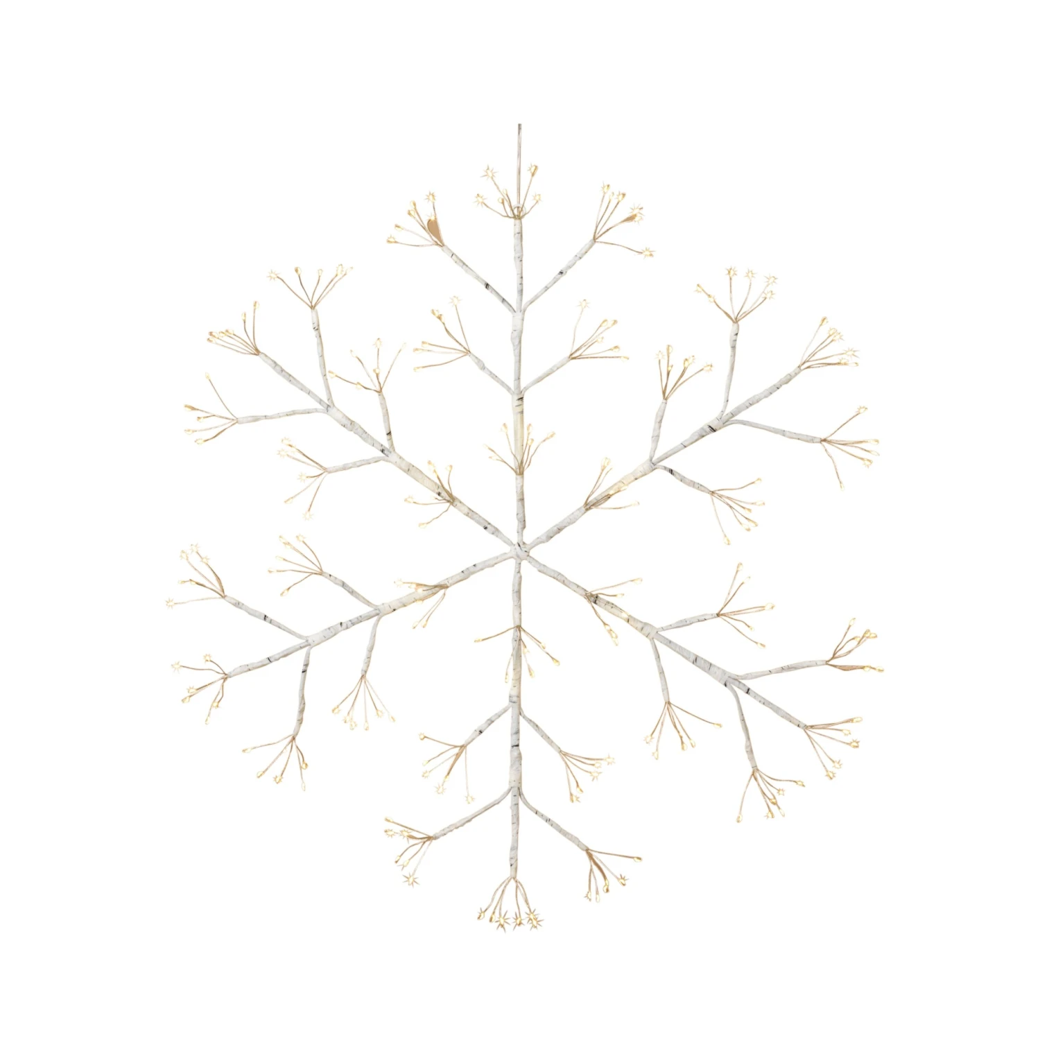 Let it snow with this 24-inch tall LED snowflake. The perfect piece of outdoor decor to add a touch of whimsical winter charm to your holiday season, leave it up all season to create a cozy ambiance in the dark winter months. Measuring 24 inches long, this snowflake is adorned with 216 warm white LED lights that glow beautifully against the dark of night. Elegant and enchanting, use this light to create a stunning focal point in your space. Hang it on your porch, fence, or anywhere else that needs a touch of holiday charm.