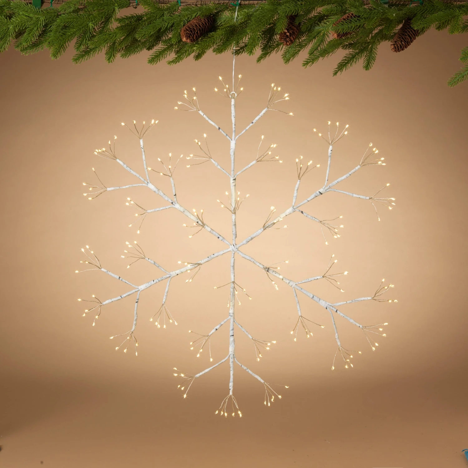 - Unique Snowflake lighting fixture, measuring 24-in in diameter, perfect for Christmas and Winter Decor