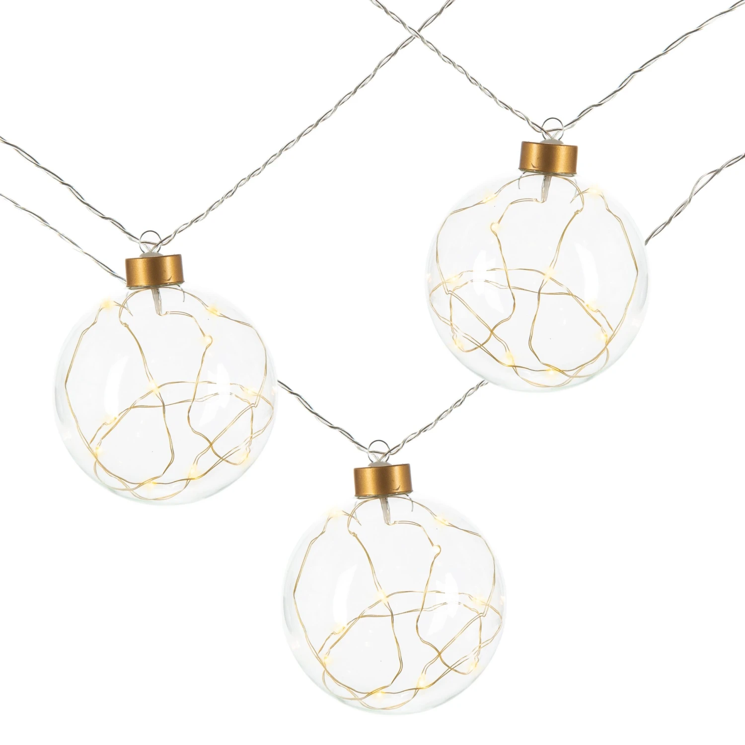 Glass Christmas Ornament Garland with Gold String Lights
