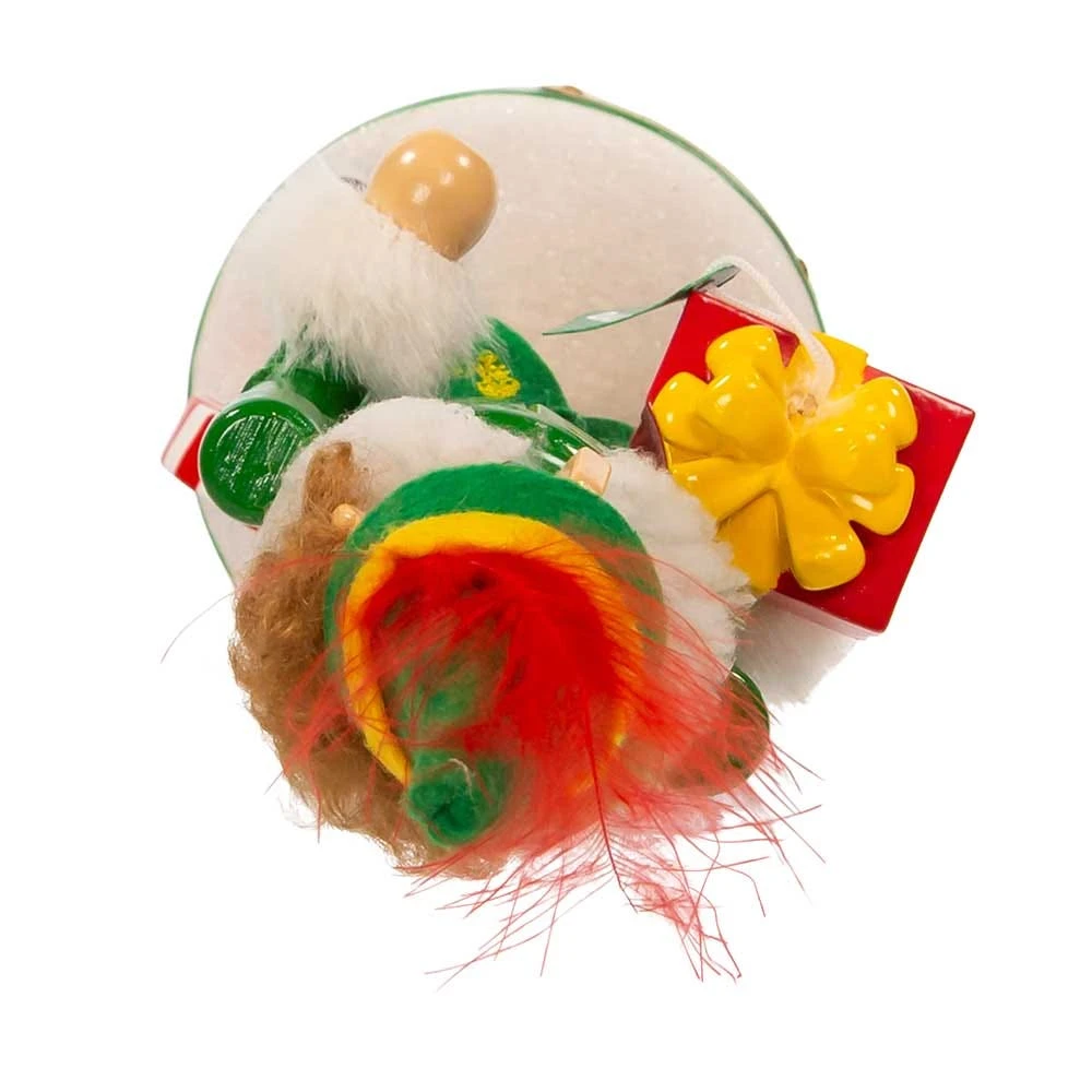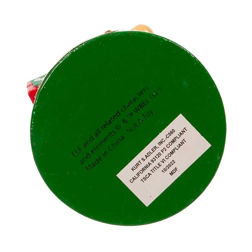 Celebrate the holidays with this Buddy The Elf Nutcracker from Kurt Adler! Everyone’s favorite human elf is featured here in his green tunic and hat, yellow tights and pointed shoes. He is holding a present “To Dad” and has peppermint candies at his feet.