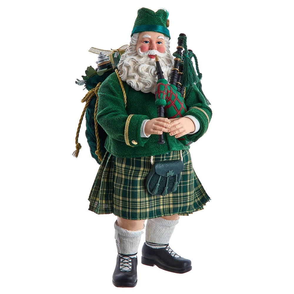 Kurt Adler 10.5-Inch Fabriché Musical Irish Bagpiper Santa
