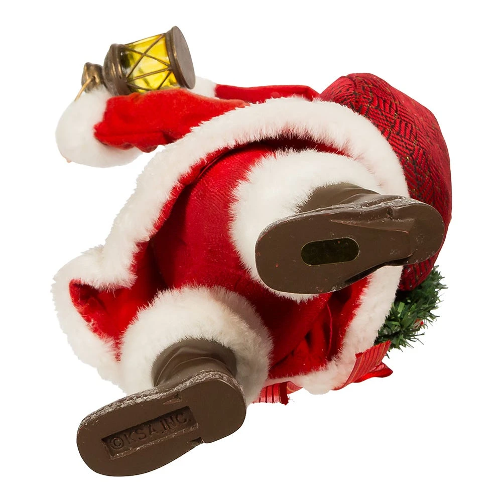 Add a fun, classic and festive touch to your Christmas décor with 10.5-inch Fabriché™ Santa from Kurt Adler. Santa is featured wearing a traditional Santa suit with black boots. He has a toy sack on his back and an oversized wreath on one shoulder and a lantern in his hand.