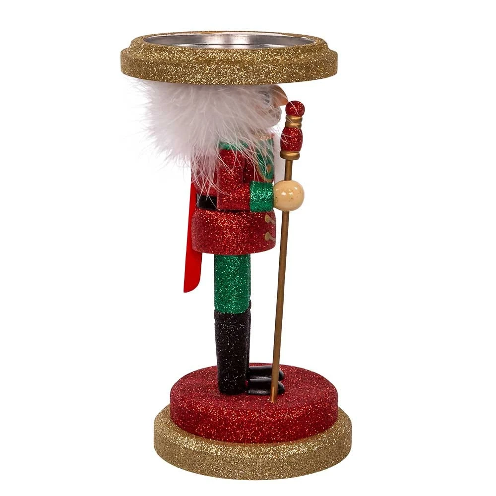 Hollywood Nutcrackersâ„¢ is a whimsical collection of nutcrackers created exclusively for Kurt S. Adler, Inc. and features an assortment of designs that put a unique, vibrant, memorable twist on traditional nutcrackers. This 10-Inch Hollywood Soldier Nutcracker Candleholder is a festive addition to any holiday decor. It features a soldier nutcracker dressed in red, gold and green glittered suit with a red glittered topped staff. He is standing on a matching red and gold glittered base.