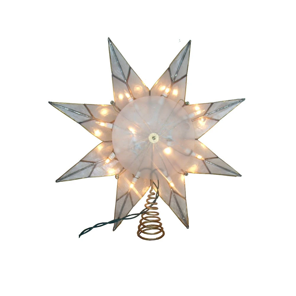 This Kurt Adler 10-Light 8-Point Gold Capiz Star Treetop is a beautiful and unique addition to your Christmas tree décor. This 8-point star features gold glitter and gold edge detailing.