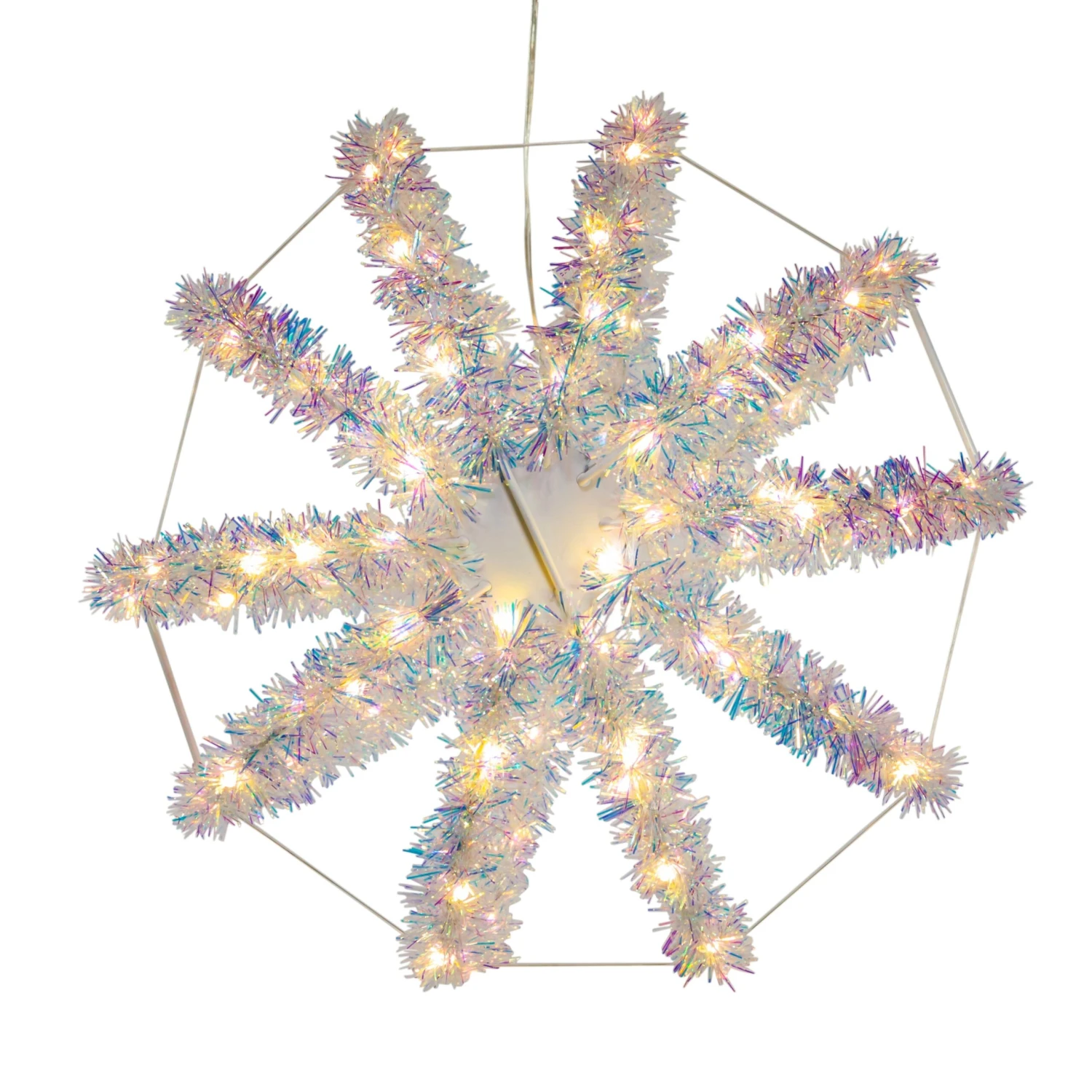 Add some light to any holiday décor with Kurt Adler’s 12-Inch Warm White LED Tinsel Foldable Sphere. This light sphere features 10 wire spokes with 10 superbrite LED lights each for a total of 100 lights. Each light gives a warm white glow sure to brighten up any holiday décor. This sphere is foldable for easy storage when not in use.