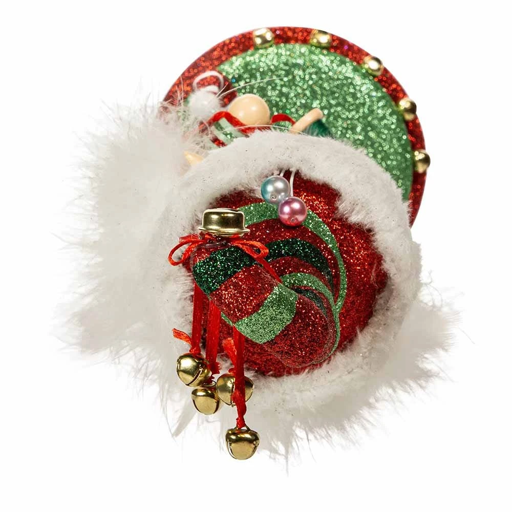 Hollywood™ Nutcrackers is a whimsical collection of nutcrackers created exclusively for Kurt S. Adler, Inc. and features an assortment of designs that put a unique, vibrant, memorable twist on traditional nutcrackers. This 15-Inch Hollywood™ Elf with Teddy Bear Nutcracker in a blue, white and red glittered outfit with classic elf shoes and a red and green glittered long hat. In one hand he is holding a trio of miniature teddy bears in one hand and in the other a spool of red thread.