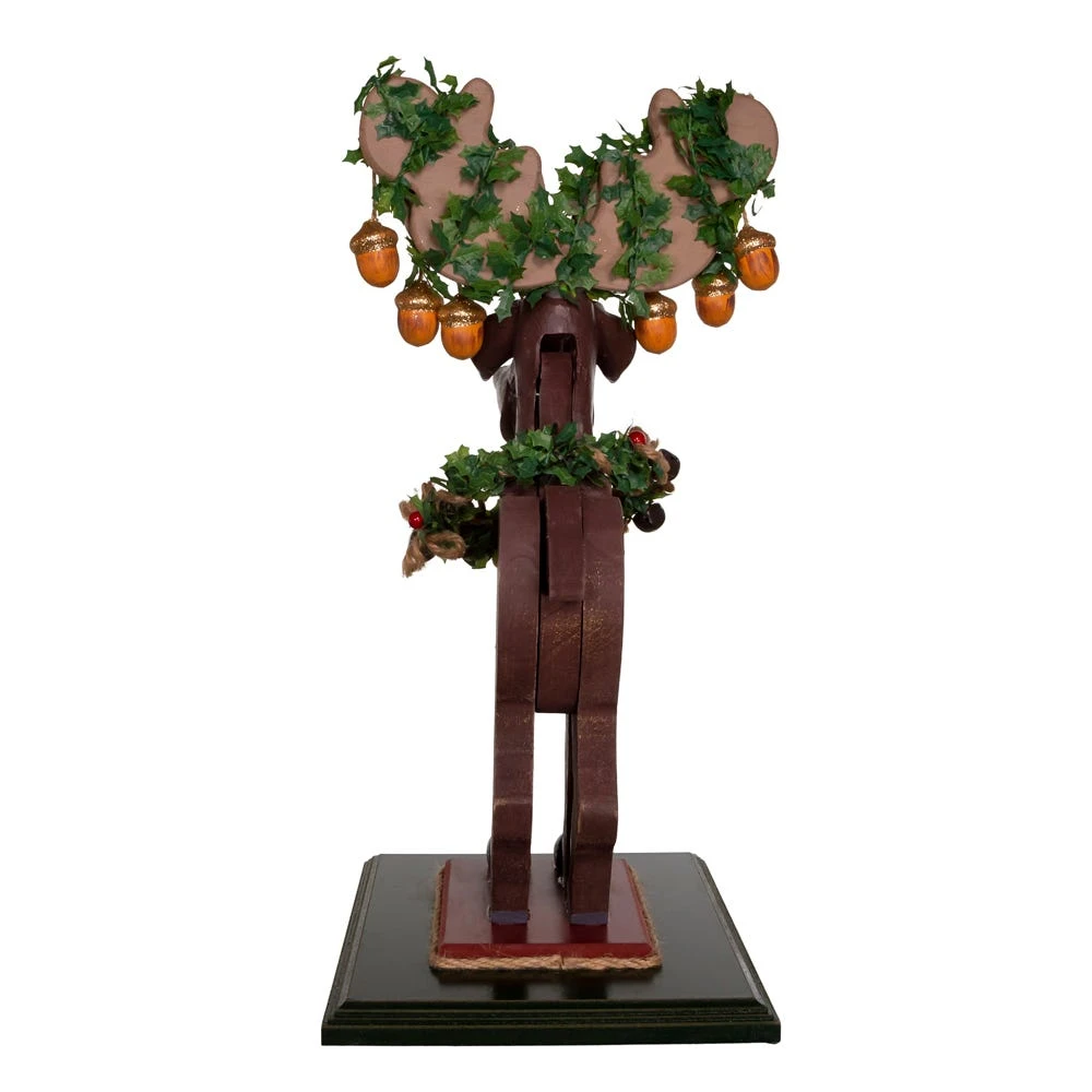 Hollywood Nutcrackers™ is a whimsical collection of nutcrackers created exclusively for Kurt S. Adler, Inc. and features an assortment of designs that put a unique, vibrant, memorable twist on traditional nutcrackers. This 15-inch moose nutcracker is a fun and festive addition to any home or office holiday décor. It features a wooden moose with a decorated wreath of bows made from rope, bells and red berries around its neck and his antlers are decorated with greenery and a strand of glittered acorns. He is standing a red and green with rope accent base.