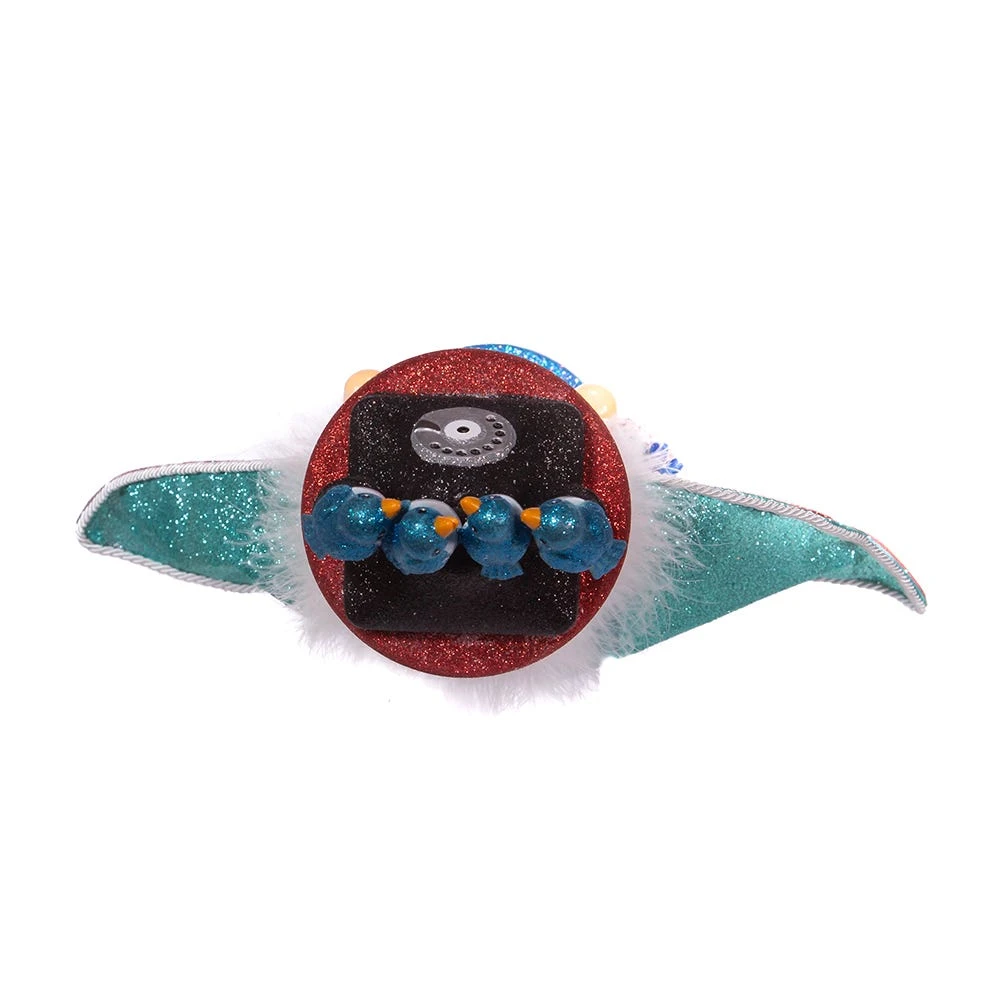 Hollywood™ Nutcrackers is a whimsical collection of nutcrackers created exclusively for Kurt S. Adler, Inc. and features an assortment of designs that put a unique, vibrant, memorable twist on traditional nutcrackers. This 17.5-Inch Hollywood™ 12 Days of Christmas Four Calling Birds Nutcracker creates a vivid image of “4 Calling Birds” from the classic Christmas Carol “12 Days of Christmas”. This nutcracker is wearing a hat with 4 birds are perched on top of a rotary telephone and is holding a basket of eggs.