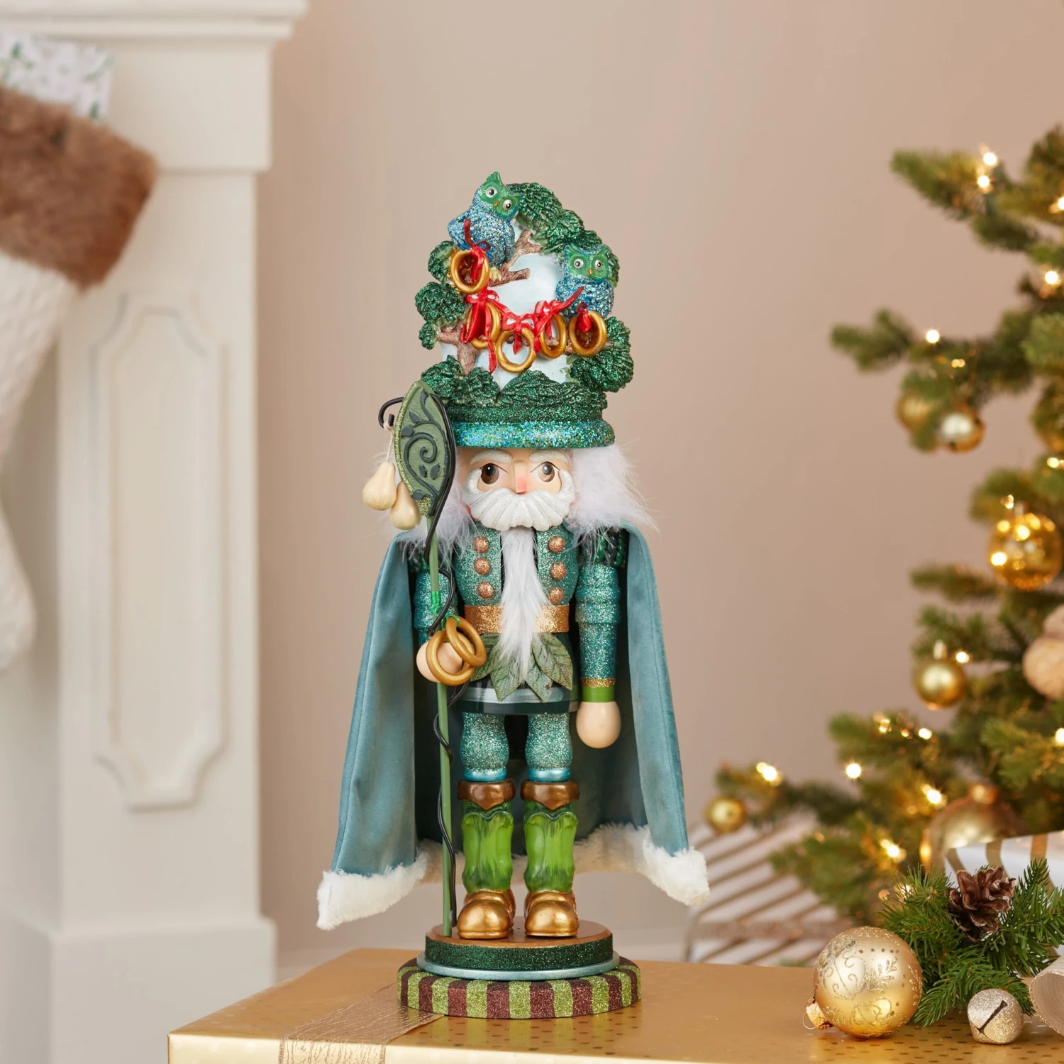 Hollywood™ Nutcrackers is a whimsical collection of nutcrackers created exclusively for Kurt S. Adler, Inc. and features an assortment of designs that put a unique, vibrant, memorable twist on traditional nutcrackers. This 17.5-Inch Hollywood™ Five Golden Rings Nutcracker features five golden rings linked together with red bows atop a glittered tree hat. This nutcracker is a stunning addition to any holiday décor