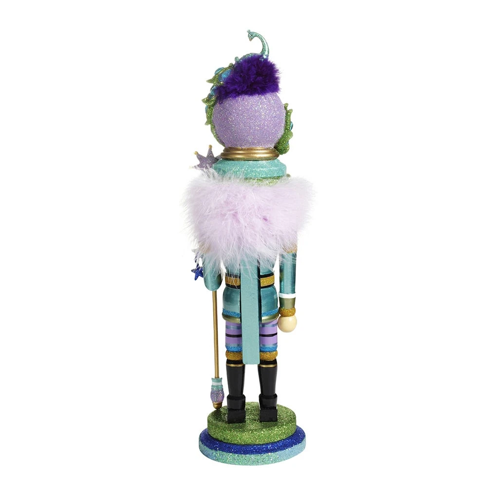 Hollywood™ Nutcrackers is a whimsical collection of nutcrackers created exclusively for Kurt S. Adler, Inc. and features an assortment of designs that put a unique, vibrant, memorable twist on traditional nutcrackers. Add a peacock theme to your home with this 17.5-Inch Peacock Hat Nutcracker. This nutcracker features blue, purple, green, and gold detailing. Topped off with a peacock perched on the hat, this nutcracker is a stunning addition to any holiday décor.