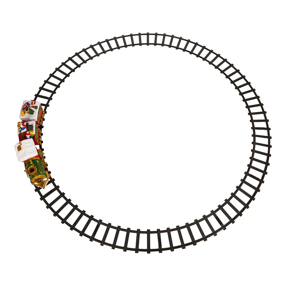 Kurt S. Adler’s 19.7-Inch Battery-Operated Light Up Musical Santa Train Set, 3 Piece Set is a festive addition to any home or office holiday décor. This 3-piece set includes train cars filled with presents and track. When switched on, lights glow and 8 Christmas tunes begin to play. When switched on it plays 8 tunes: “We Wish You A Merry Christmas,” “Oh Christmas Tree,” “Jingle Bells,” “Deck The Halls,” “The First Noel,” “Joy To The World,” “Hark! The Herald Angels Sing” & “Silent Night”. Train track diameter measures 60-inches