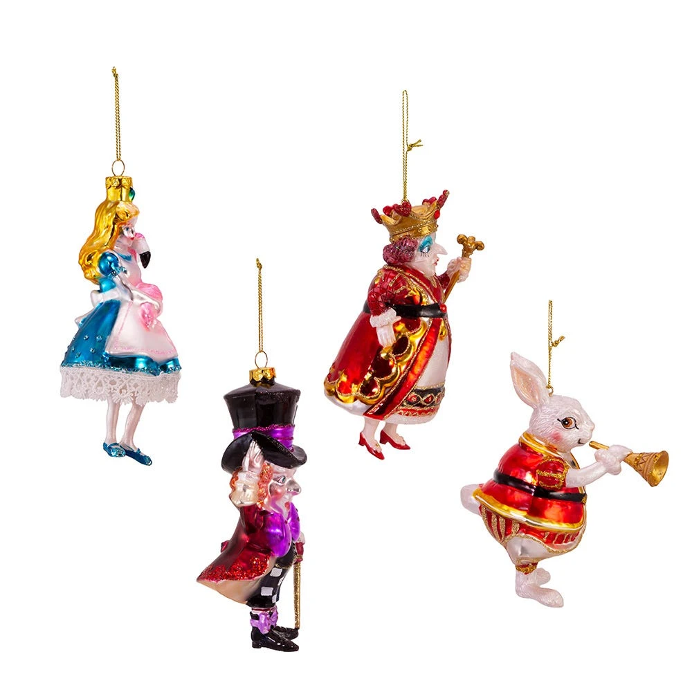 Kurt Adler 5-5.5-Inch Noble Gems Alice in Wonderland 4-Piece Ornament set