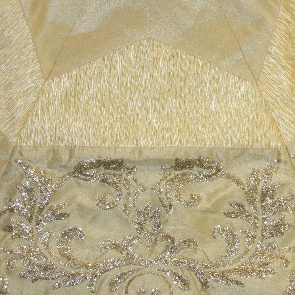 Add the perfect finishing touch to your holiday décor with this 50-inch Gold and Ivory Sequin Tree Skirt from Kurt Adler. Its allover gold design is angular and features gold and ivory sequins and detailing.