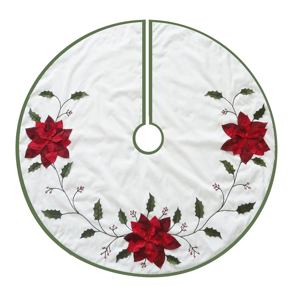 Kurt Adler 54-Inch Ivory with Holly Leaves and Poinsettia Tree Skirt