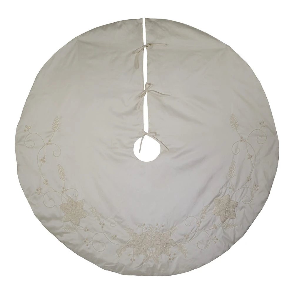 Kurt Adler 54-Inch Ivory with Pearl Beads Tree Skirt