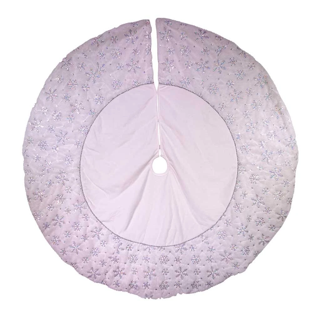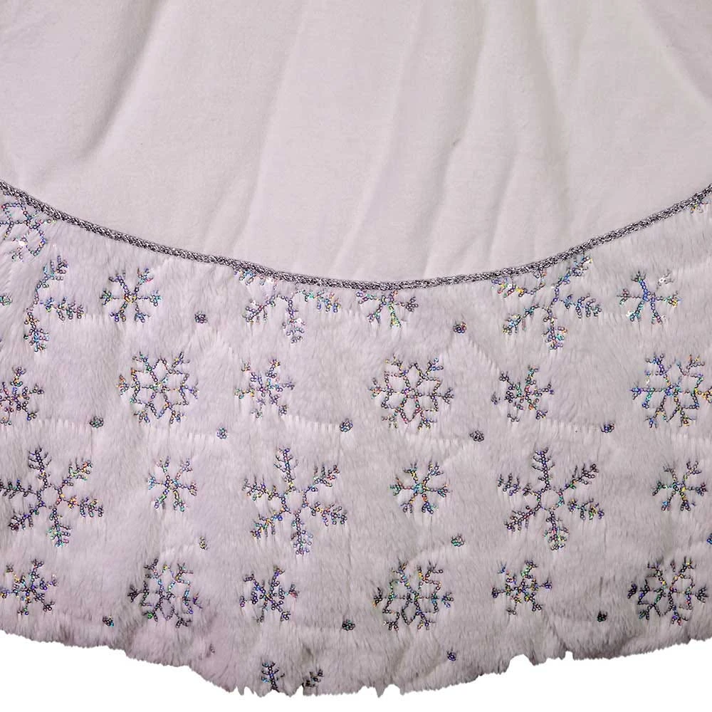 Kurt Adler 54-Inch White and Silver Velvet Sequin Snowflake Treeskirt