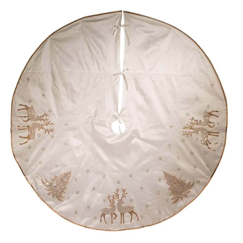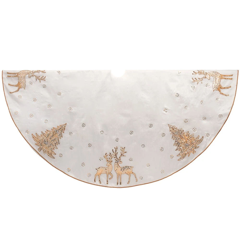 Kurt Adler 72-Inch White Tree Skirt with Gold Glitter Tree and Reindeer Design