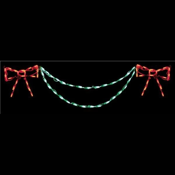 The LED Bow with Garland End Piece (Red/Green) adds electrical brilliance to your home or office when you install 20 to 30 of them upon the eaves of your roof. You have two sets of red lights made up to resemble bows, and a set of green lights to represent a garland. It is 54 inches long and features 70 LED lights. Lights are miniature in size and can be removed.