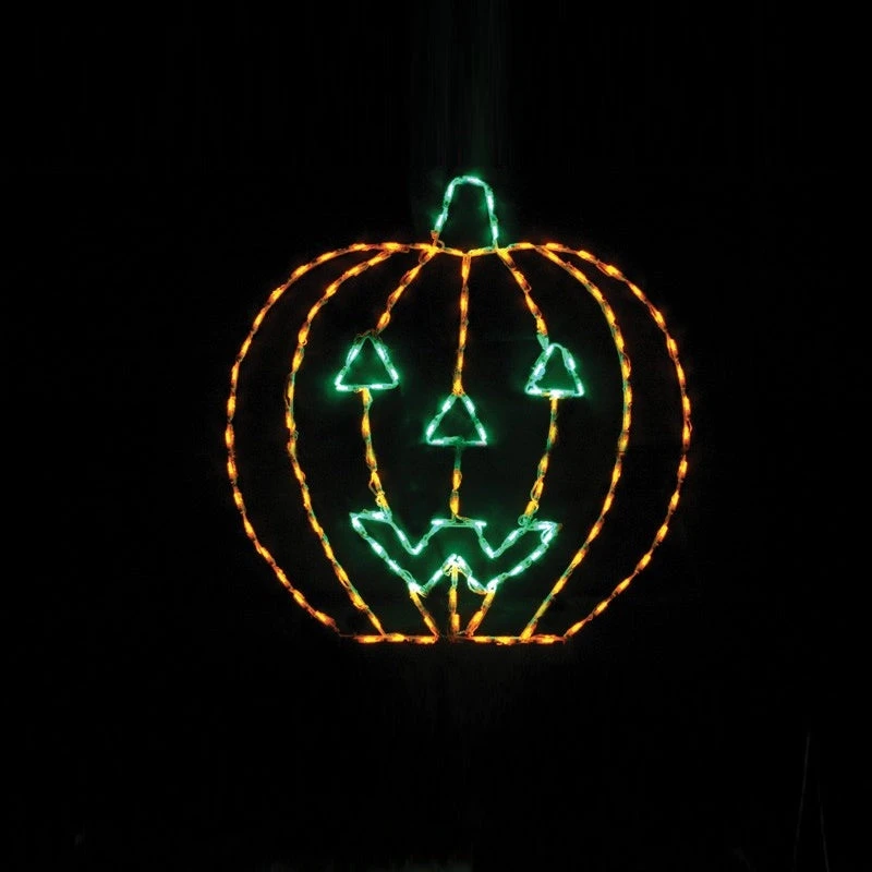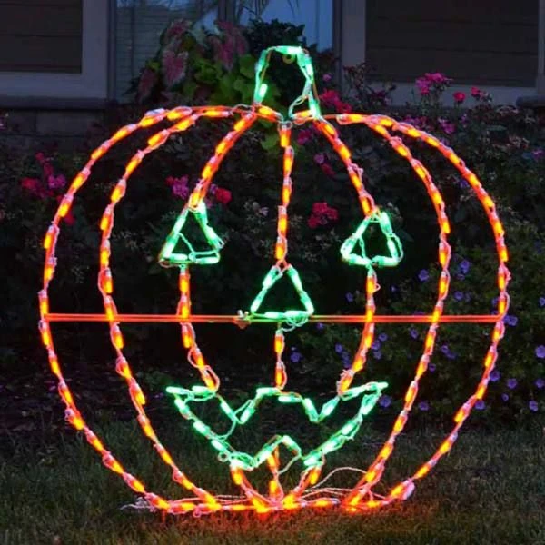 This LED Jack-o-Lantern is the perfect stand alone Halloween decoration, or addition to an existing display. Orange and green LED lights make up this family-friendly pumpkin piece.
