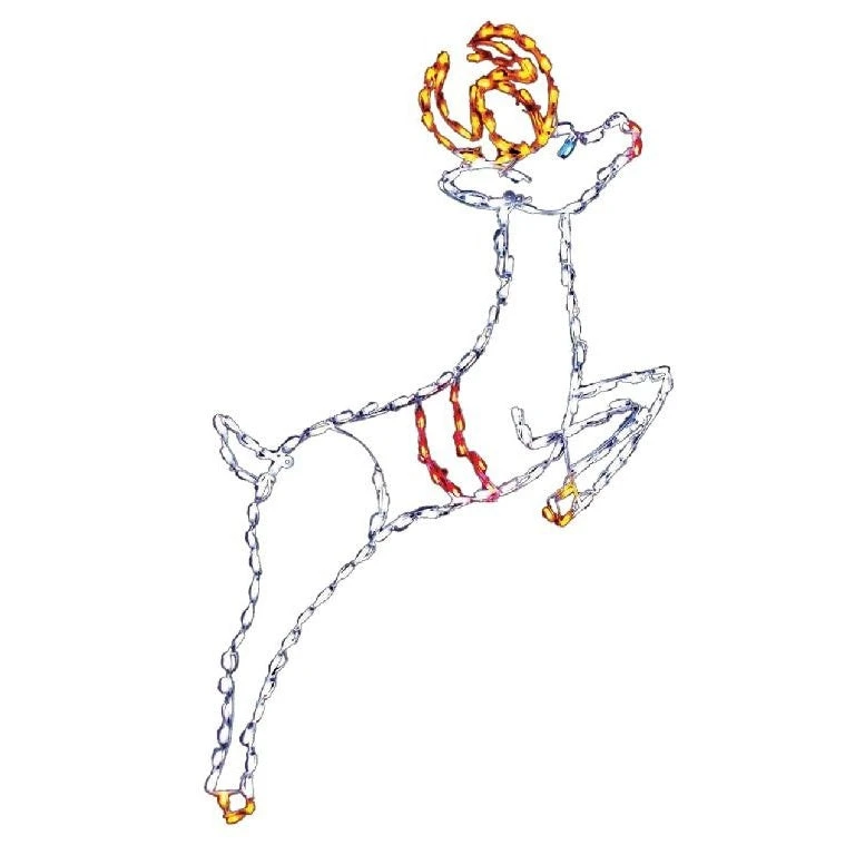 The LED Leaping Reindeer is a magnificent example of exterior holiday display. It features a beautifully manufactured framework composed of power-coated steel in the shape of a deer bounding toward the heavens. With this framework and dimensions of 69 x 49 inches, it can support 150 lights and four distinctive colors.
