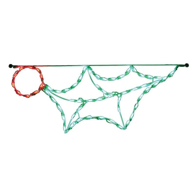 The LED Holly with Berry Linkable from Brite Ideas is both more elaborate to display and more convenient to use than most roof display items. With just one of these 44-inch ornaments, you get 60 preinstalled lights—mostly green, with some red—in the shape of a holly leaf with a red berry. This creates a lovely pattern when several of these are linked together. Easily installed with spiral or gable clips. The lights are built around a lightweight, rust-resistant aluminum frame.