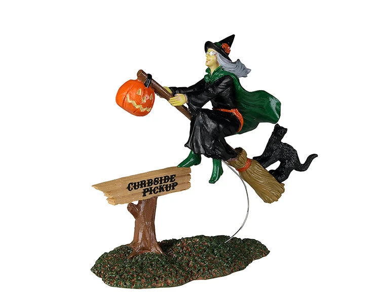 Be careful the next time you stick out a thumb out trying to hitch a ride in Spooky Town, you never know who you might attract! Fortunately for you, though, it looks like this witch at the Curbside Pickup only has room on her broom for herself and her cat. With a pumpkin on the front to guide her way, perhaps she off to do a spot of trick or treating. We have a sneaking suspicion she’s probably more on the tricking side of things!