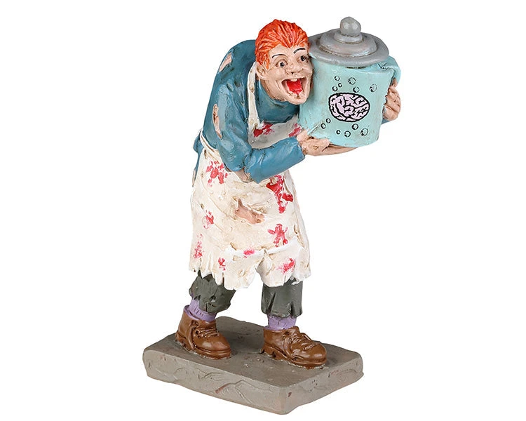 No evil genius can succeed in their experiments without the help of their trusty Laboratory Assistant. All sorts of bizarre and gory experiments happen in the Spooky Town laboratory but it’s all behind closed doors – no visitors allowed. Testament to this is the blood stained apron of the lab assistant the brain in a jar he transports so nonchalantly. Steer clear or you might find yourself part of a live autopsy or human transplant.