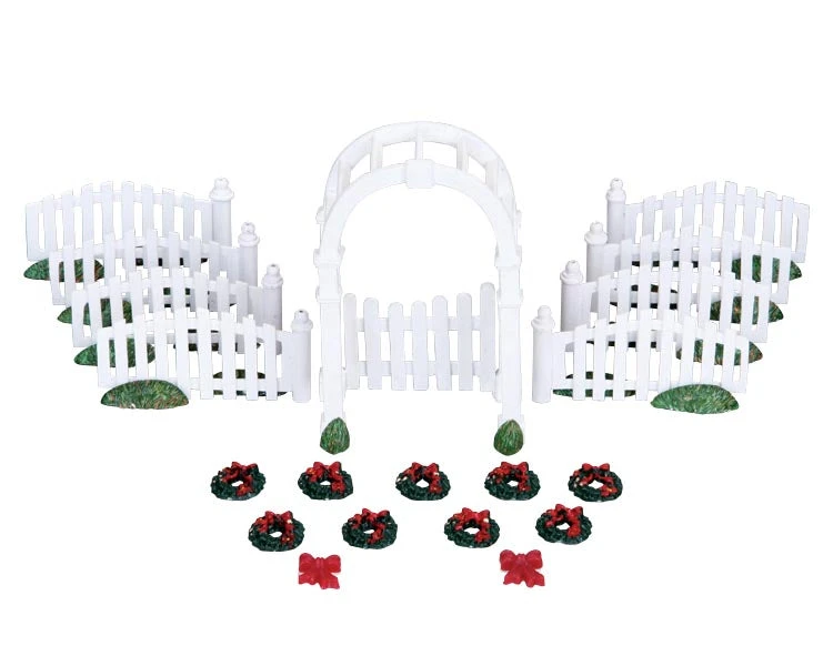 Lemax Village Collection Plastic Arbor & Picket Fences with Decorations, Set of 20 #04233