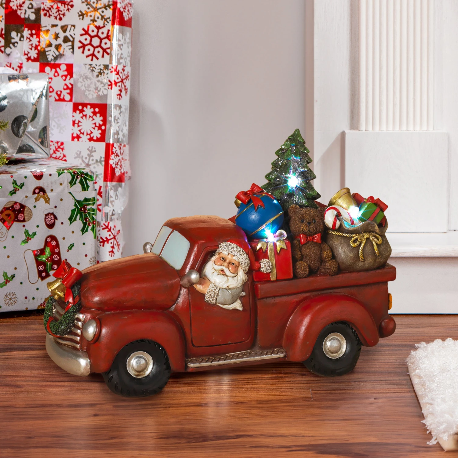 Lighted Holiday Truck with Santa and Christmas Gifts
