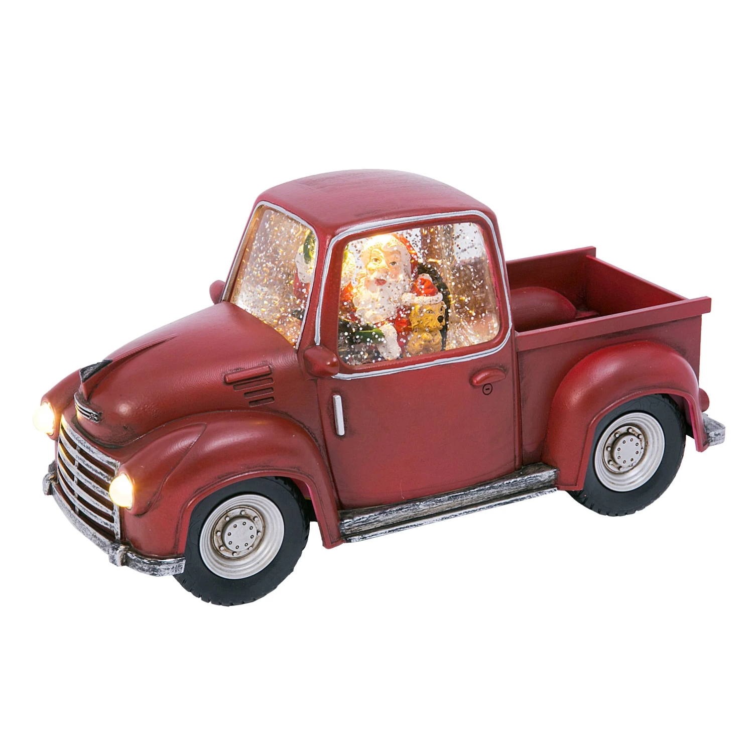 Vintage Red Truck Christmas Snow Globe, Lighted with Timer